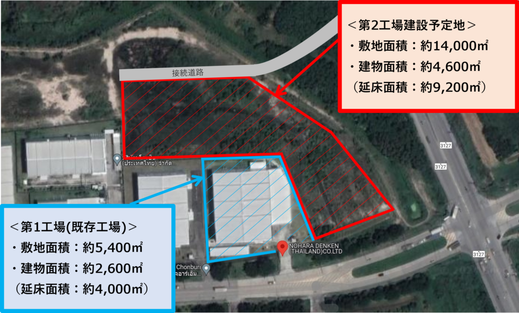 当社は、自動車関連部品の需要拡大への対応、ならびにインド市場も視野に入れた事業拡大を目指し、NOHARA DENKEN(THAILAND)CO., LTD.の既存工場の隣に 第2工場建設を決定いたしました。
