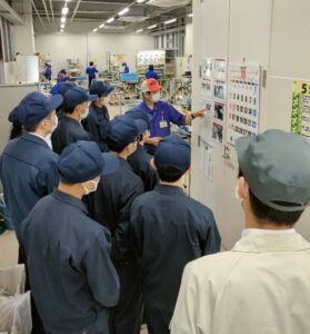 新設した浅西工場にて、現場リーダーから工程説明等をさせて頂き、学生のみなさんは熱心に耳を傾けておられました。